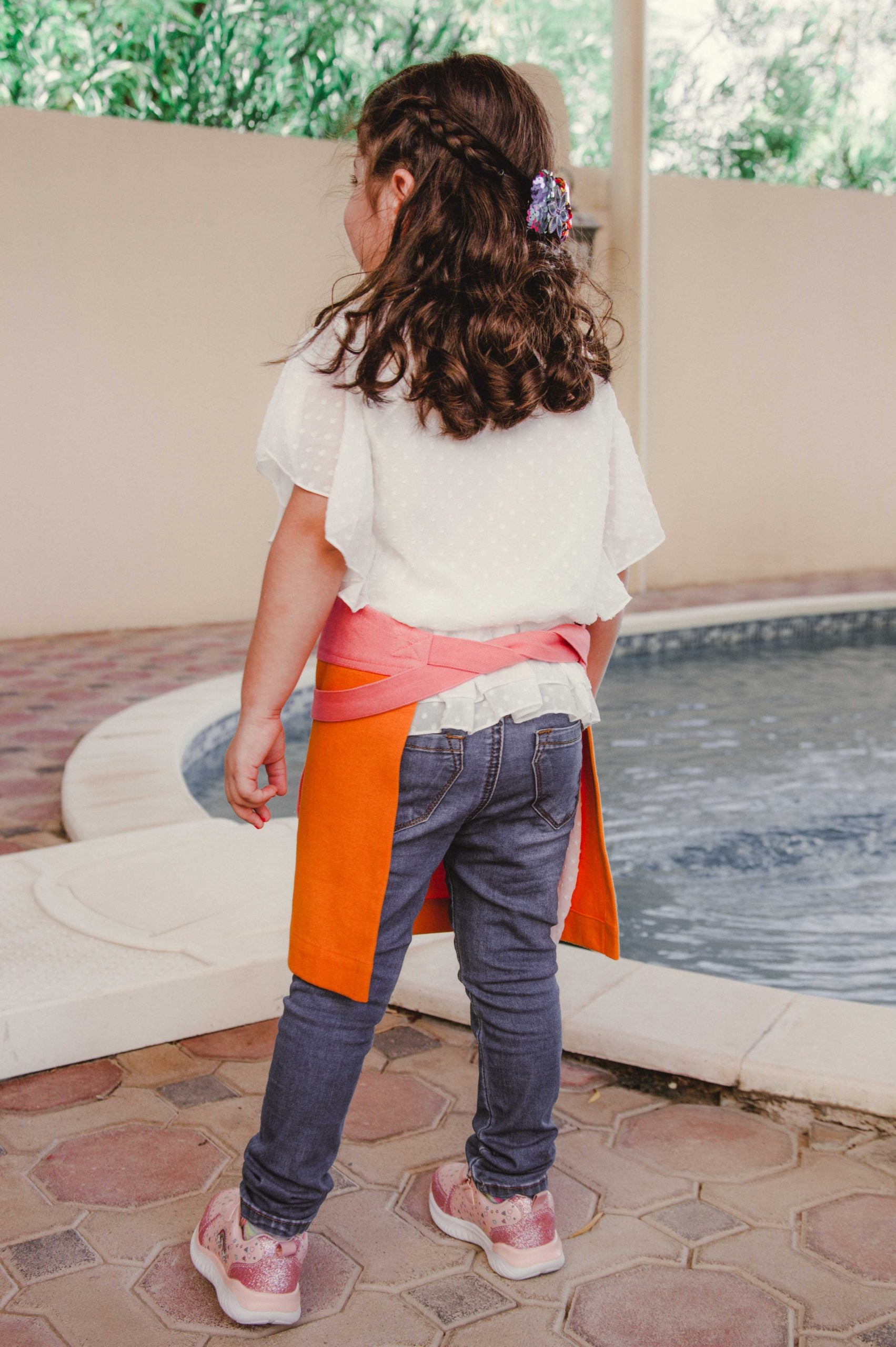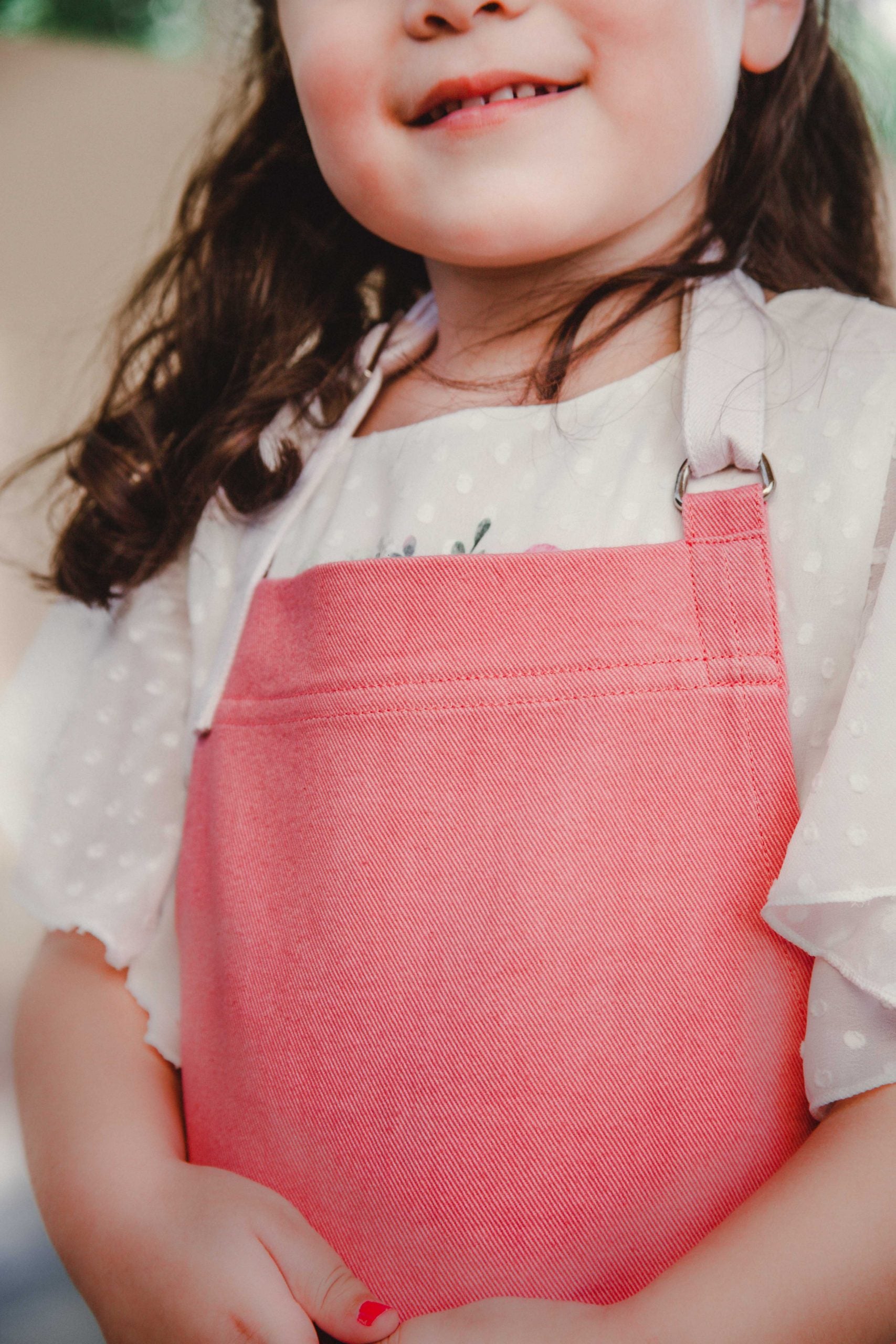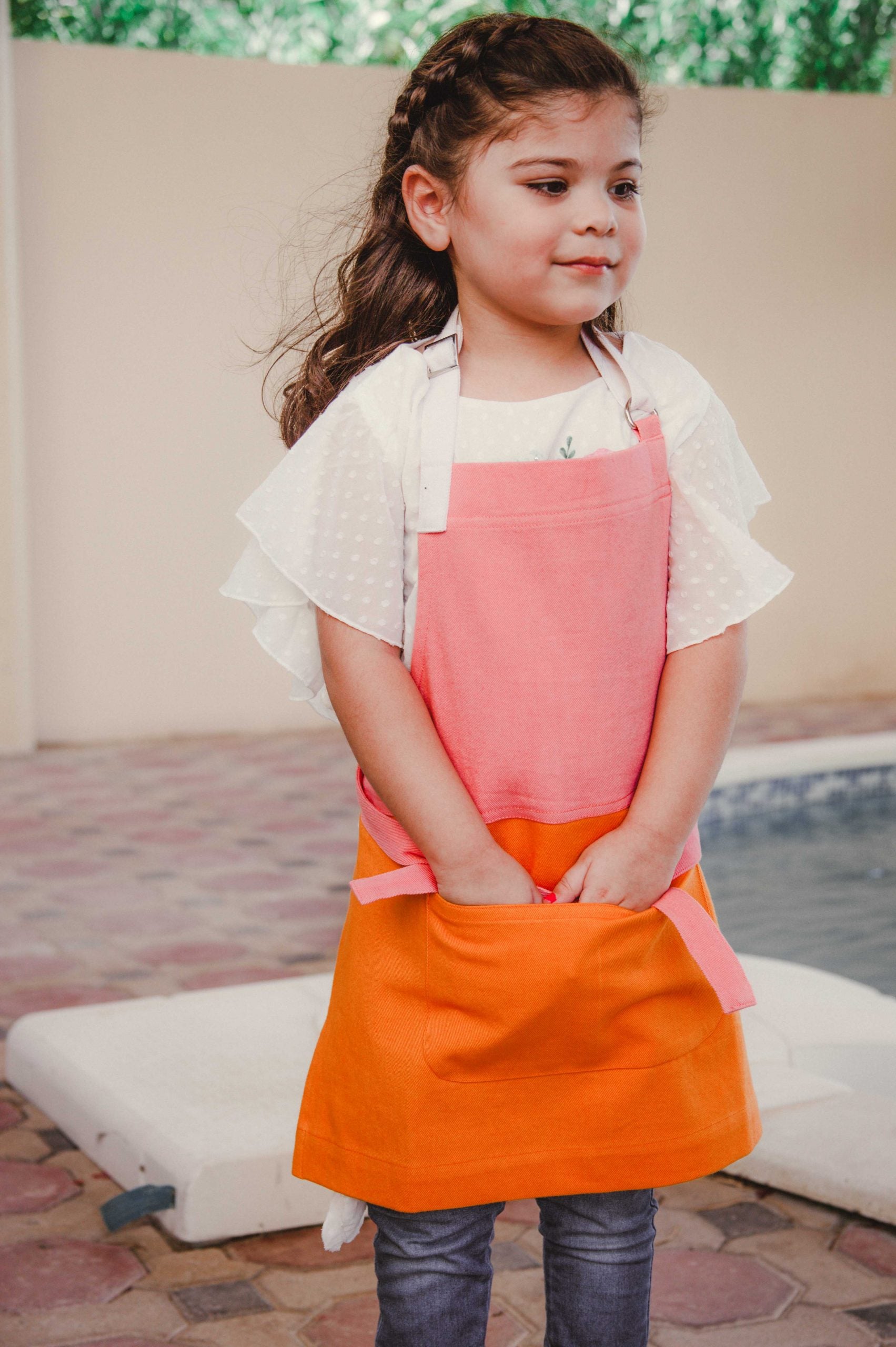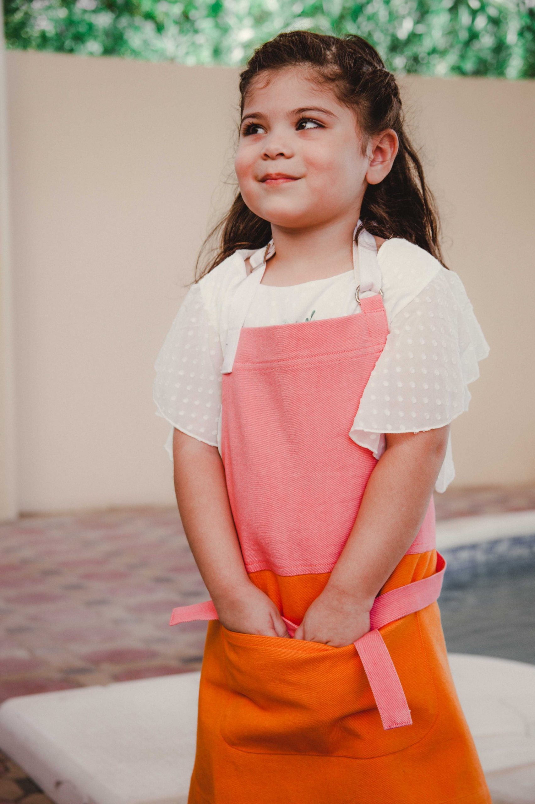 When asked from a 7 year old what this apron reminded them off ? The reply was strawberry cupcake with white sprinkles on top. This dual toned apron is great for our tiny chefs to create some culinary magic in the kitchen hence we have made this one with our softest 100% cotton featuring adjustable fabric neck straps.