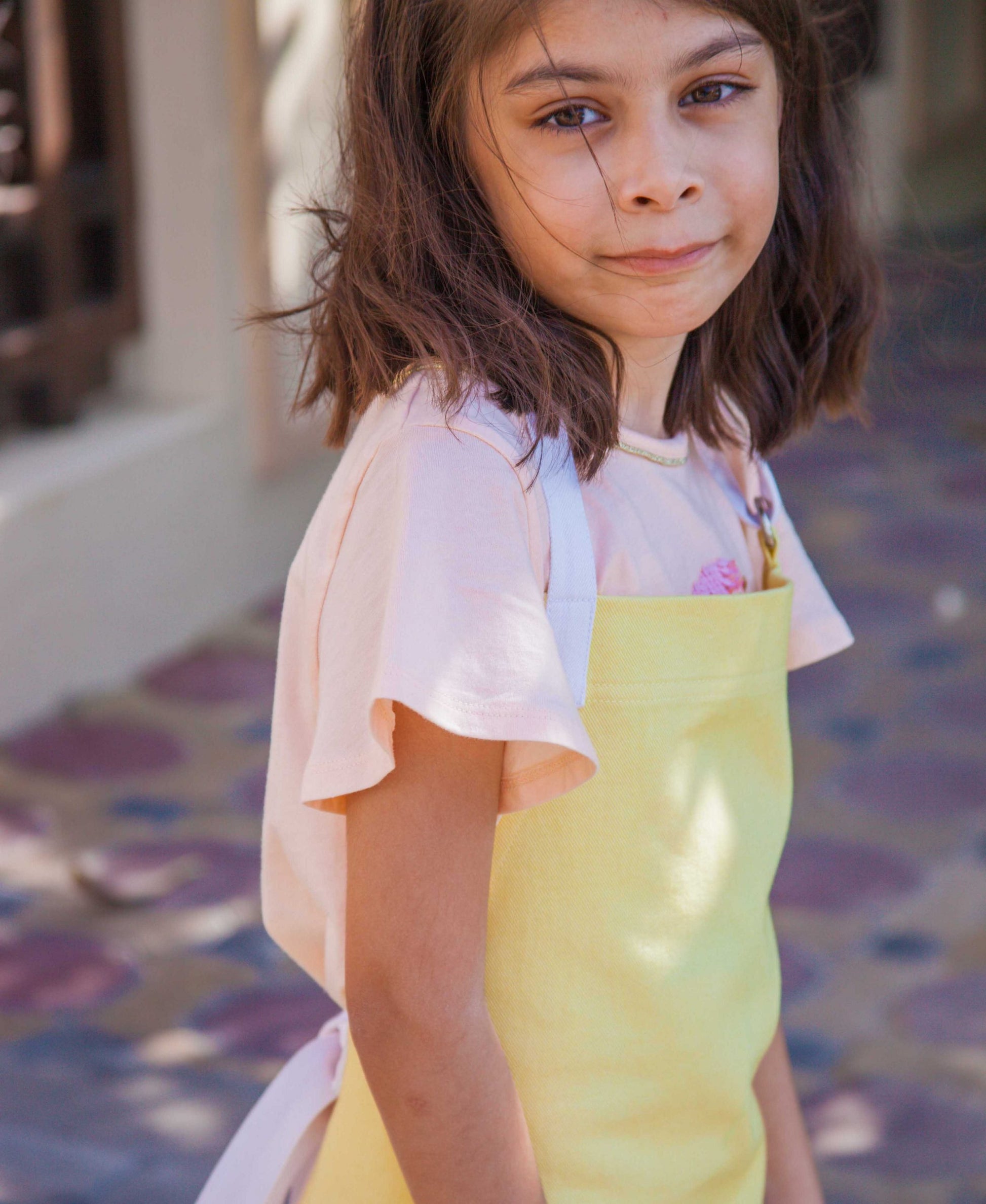 Just like a sunny side up this apron will add a pop of sunshine to whatever adventures you are creating in and out of the house. What can se say, we heart a yellow moment on a little one !